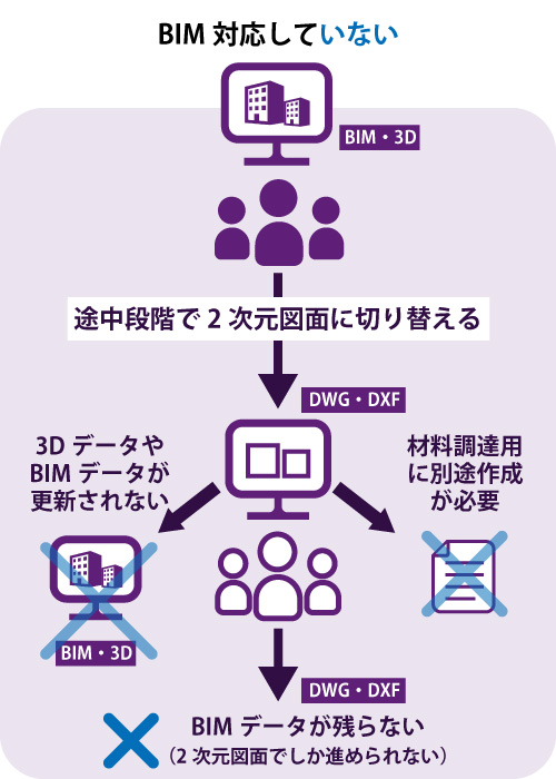 せっかく作成していた3D CADデータが、BIMとして使用できないデータに変わってしまうことになるのだ。