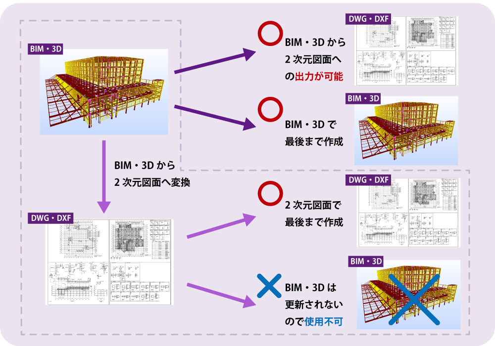 鉄骨専用3DCADで作図していた情報が、切り離した時点で同期することは一切無くなり、更新されずに終わる。
